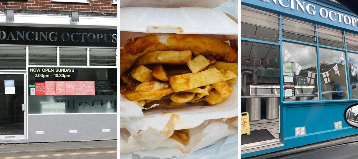 Discover the best Fish & Chips takeaway at Dancing Octopus in Newcastle-under-Lyme! Enjoy delicious, freshly cooked meals available for takeaway or delivery, perfect for lunch or dinner. With a casual atmosphere, wheelchair accessibility, and a fun kids' menu, we're ideal for families, university students, and tourists alike. Join us for a quick bite or a relaxing meal—all at reasonable prices. Call us at +44 1782 614947 or visit us at 12 Pool Dam, ST5 2RR.